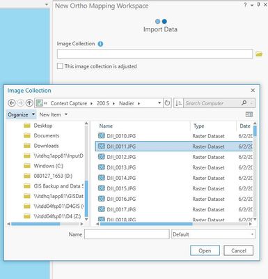 When creating an imagery workspace in Pro (2.6.2), using the New Workspace tool, the tool doesn't seem to recognize the folder that contains the imagery. Step 1: type is set to drone and basemap is set to Topo. Regardless if I check "Import and use existing image collection", the issue still happens.