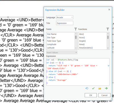 I have an Arcade expression that conditionally colors a piece of text in a layout. If I remove the CLR bits it works but with a default color of black. I'd like to get it working with the color assignment if possible. Here is the current statement that proves out as working but I don't get the color I just get the actual color statement characters.