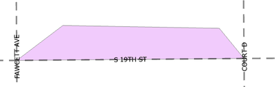 I'm mapping parking blocks and I need to pick up the street name of the longest intersecting street segment (S 19th St in the simple illustration below)