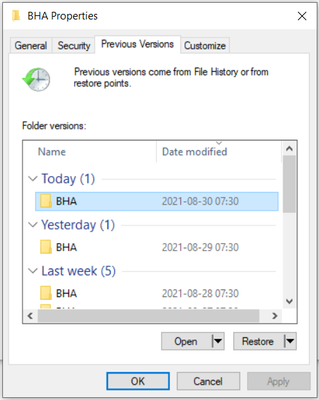 2. If the drive is on a server and data backups exist, you may be able to access the folder as a previous version: