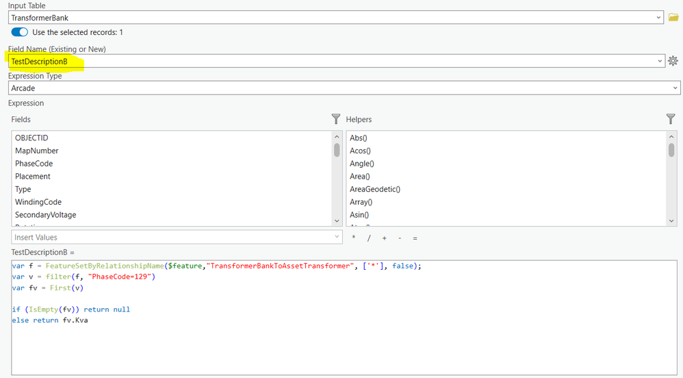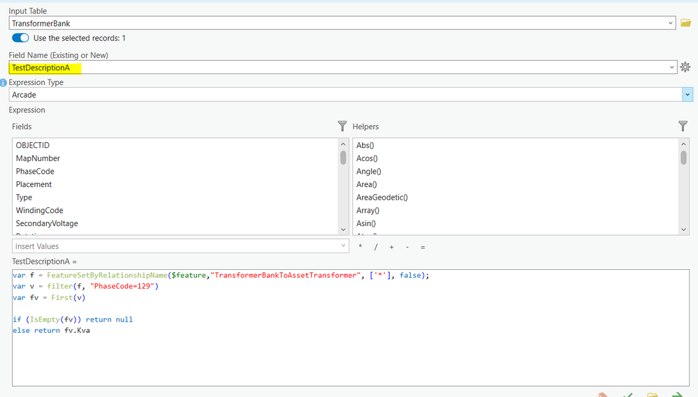 I have TestDescriptionA, TestDescriptionB & TestDescriptionC in my TransformerBank feature class.