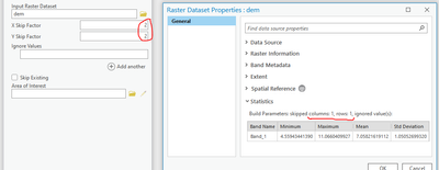 I've tried changing inputs to the GP tool to get ANY kind of change to the outputs. In fact the 'metadata' listed on the raster properties never updates either. Example, below. I used skip factor 2,2. No change to the stats. 'Build Parameters' info doesn't show a change either.