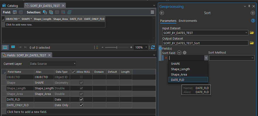I have both field types in the example feature class below, but when it comes to the Sort tool, only the DATE field is an option. Simple oversight by Esri, or am I missing something?