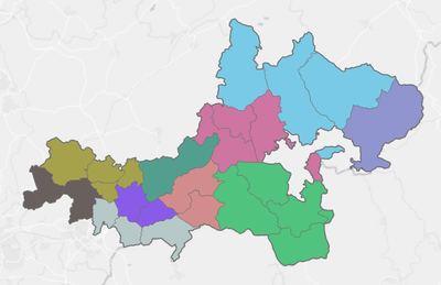 Besides these communities I also calculated how fast you can reach the centers from certain points in the communities or what is the nearest center. For this I used the Identify nearest facility tool. As you can seem there are clearly some connections between the communities and the centers. Now I want to take this orientation into considerations when creating the zones.