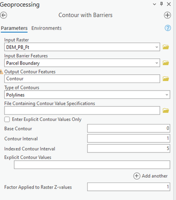 Here are my input values using "Contour with Barriers":