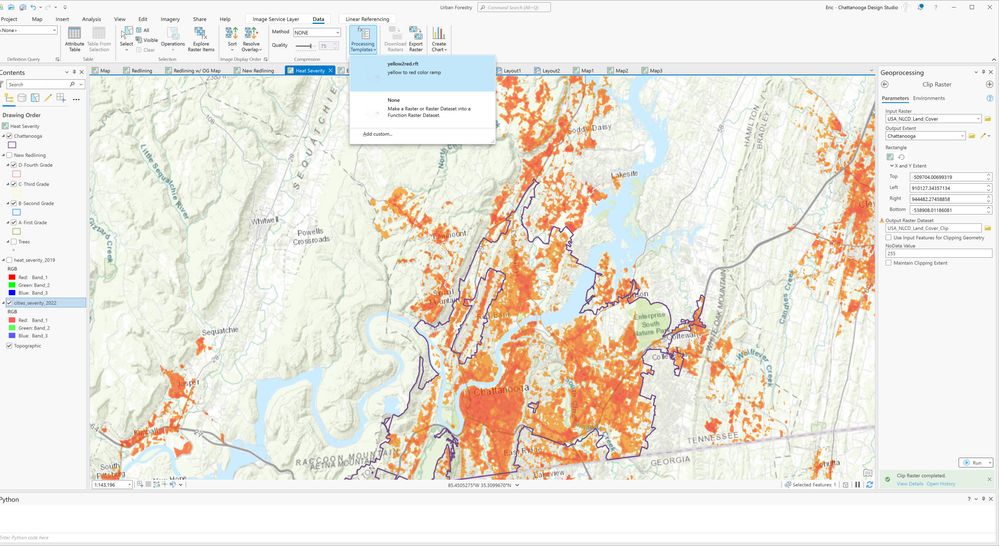 Then you can run the Clip Raster geoprocessing tool with "USA NLCD Land Cover" as the Input Raster, and with the Output Extent limited to the Chattanooga area.