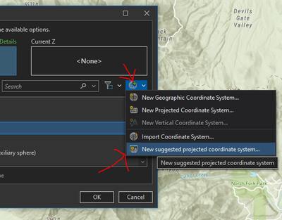 If you're working on projects in Price, Utah, the typical system is the StatePlane one that I mentioned, WKID 102743. If it's a UDOT or State of Utah kind of project, the UTM one is what is commonly used, WKID 26912. If you are working with Surveyors, they typically make their own projection so you'll have to create that file from the survey files, or have one of surveyors do it. If none of the above apply, you can always have ArcGIS Pro suggest a system for you by looking at the map properties, under coordinate systems:
