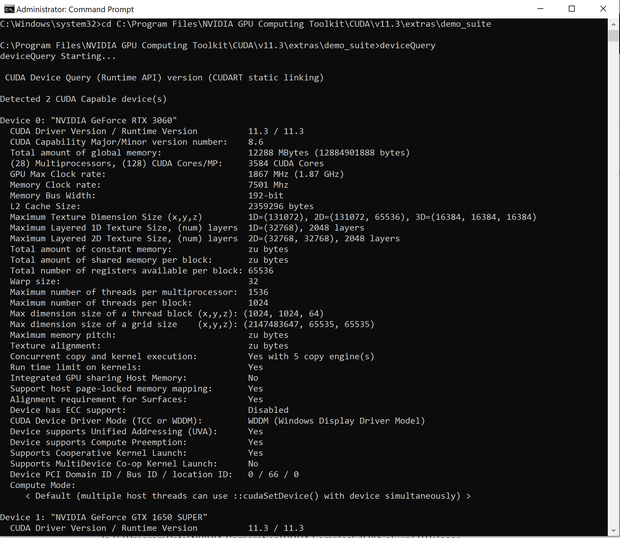 Thanks, Dan. I have worked through the recommended steps in the blogs. The CUDA Toolkit has been installed, and running deviceQuery show both cards are CUDA-capable and detected.