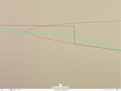 I'm trying to edit vertices by snapping to the red line, but whenever I try to apply edits it ends up saving itself elsewhere. I made sure the map and the feature class are in the same coordinate system. The black line is what I intended, the neon blue is where it decides to save, any advice?