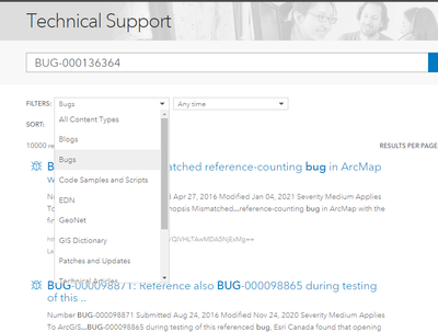 https://support.esri.com/en/Search-Results#search?q=BUG-000136364