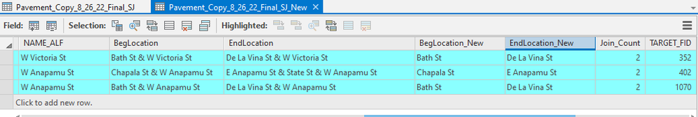 I don't think this will work because I am realizing the BegLocation and EndLocation have the intersecting street name but they vary in placement in the string base off the original fc beg and end vertices.