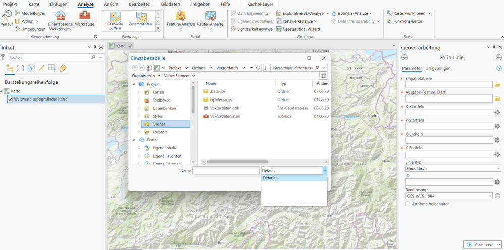 One person of the class could not select files from his local device in ArcGIS Pro. The navigation to the interesting folder ist possible but afterwards the geodata files are not shown. There is a curious "Default" selection below (see image below). That is the main difference between the functionalities in the class. But it happens for every file selection in ArcGIS Pro. Does someone have an idea how to solve this problem? Thanks for an answer.