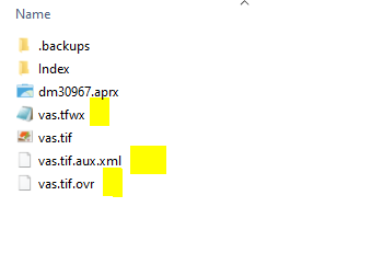 Notice that I've used notepad to open the .tfwx file: it's just a text file that equates to the old style 'world file' that holds the coordinates of one of the corners of the image...