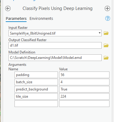 5. With regards to the Model Arguments, we see 5 arguments have been supplied as a default for U-Net but when I look at the Help in arcgis.learn module chip_size is not an argument, in fact its not mentioned anywhere on that page for the UnetClassifier. I have come to the conclusion that arguments it offers up are not always appropriate, seems like a tool interface bug, am I correct?
