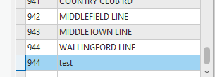 Then I close/open the domain table and "WALLINGFORD LINE" is gone and only "test" remains: