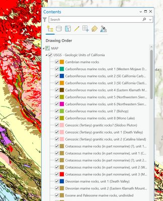 I need to edit each geologic unit: change color, pattern, name/label; make group layers; and change drawing order, as shown: