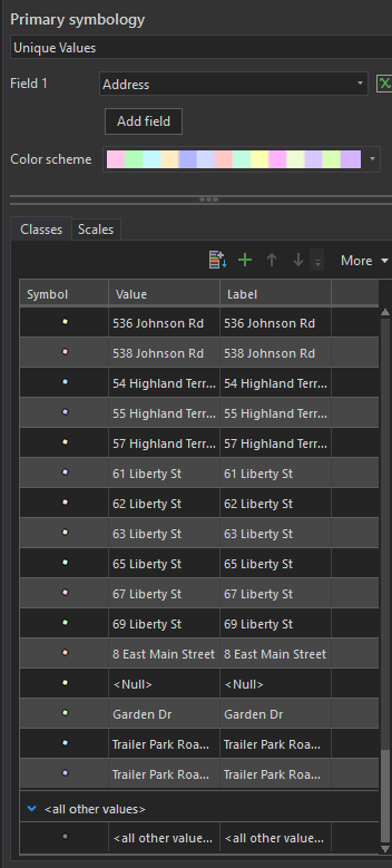 I am trying to get all of my points with "Null" values in my "Address" field to appear a different color than the points that already have assigned addresses.