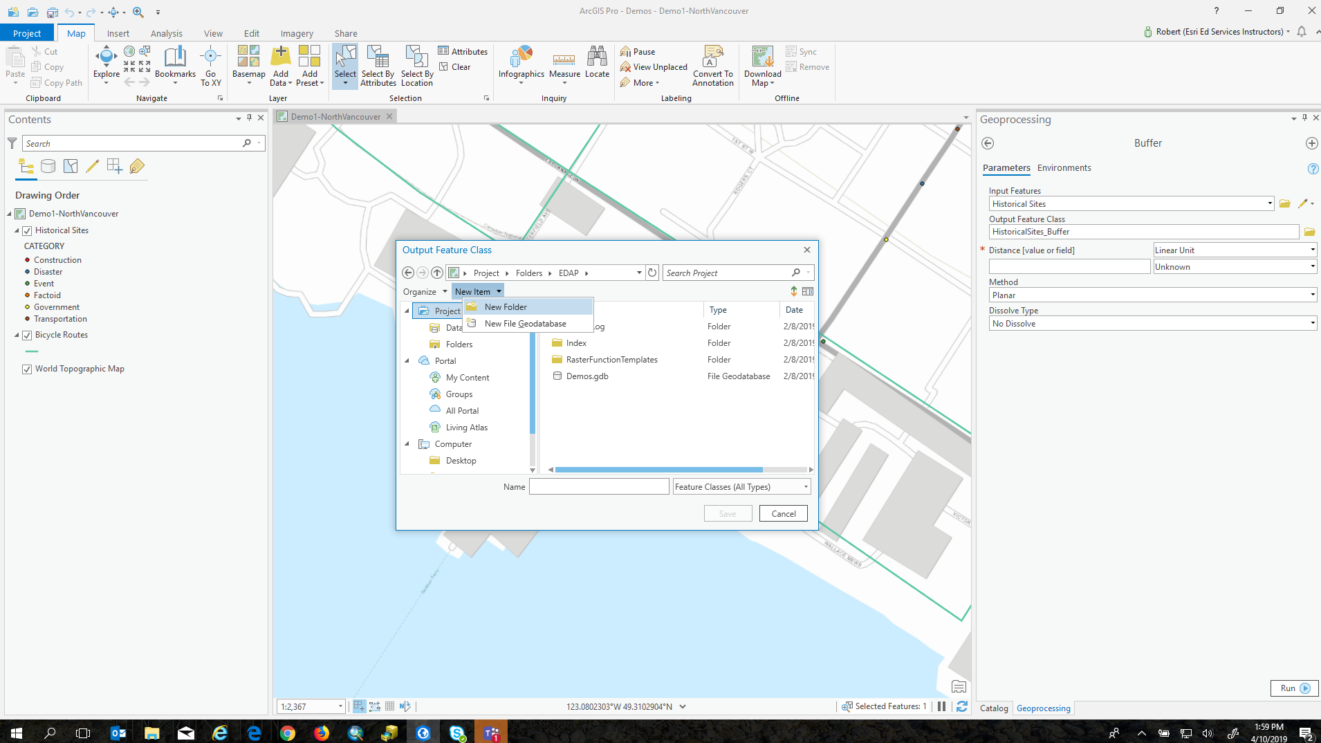 In ArcMap whilst browsing locations I could simply click -- New folder, or new GDB, in ArcPro this isnt there. So I either have to close the window then go and make the GDB in catalog then reopen it, or use windows to go and make a folder. Simple usability things that ArcGIS has these covered and works for everything I need stop me from considering upgrading.