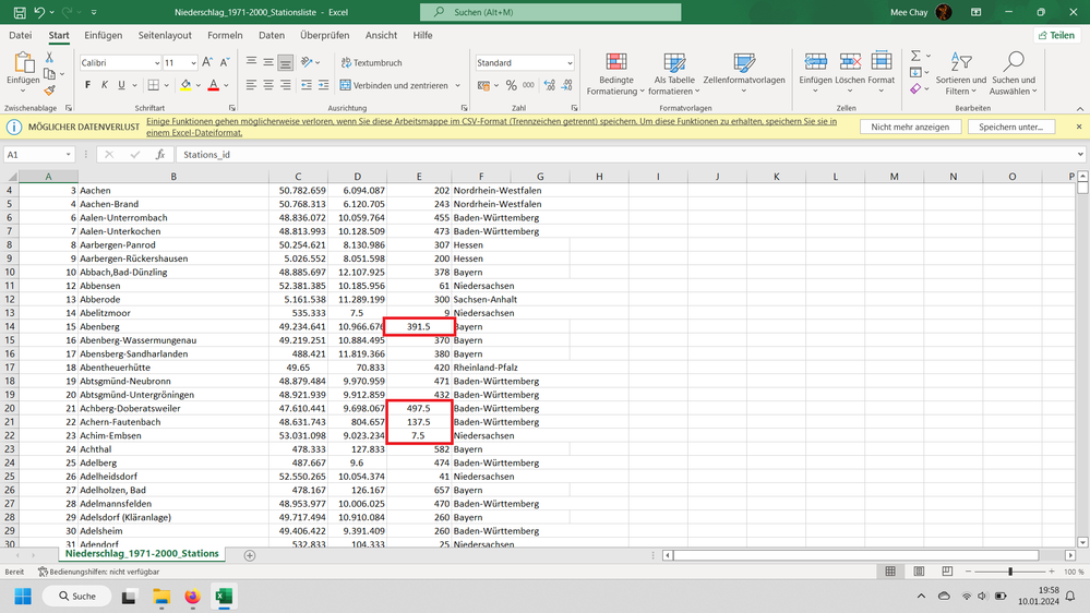 I tried to fix this in EXCEL but my adjustment weren`t safed. I can`t change the formation of the cells! Maybe because it`s originally a .txt file.