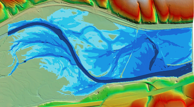 As a test, I made the simulation area on the right larger than the DGM, which forces the water to drain off into nothingness on the right. But there I got a completely different result, which I can't really explain either, since the result should actually correspond to the result with drainage.: