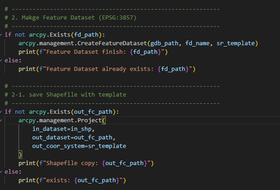Using the code above, I created a test.gdb file and created a feature class with the same coordinate system as the road.shp file