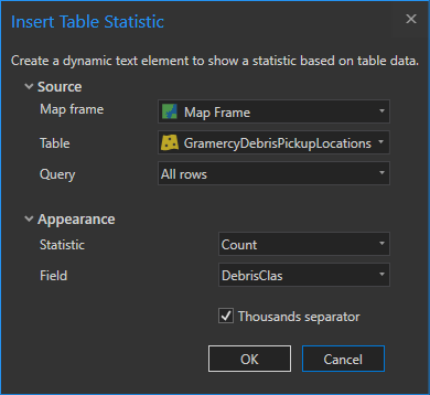 I am trying to insert Dynamic Text using Count statistic. However, when I put the statistic in my map, I get '0' as the value.