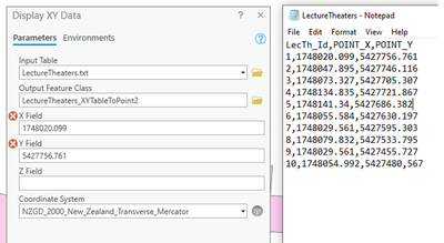 For X/Y Field parameters in Display XY Data, you need to choose (from dropdown) POINT_X and POINT_Y fields respectively.