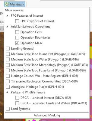 I hope this is just a support question and not an idea (though will happily move it if so). I've found that when using Layer Masking in ArcGIS Pro, that if I then move/reorder layers with a Mask setting applied (i.e. Land Systems (FPC) in the image below) in the table of contents, it wipes the mask setting. Likewise, if I move a layer that is being used as the Mask (i.e. Operation Mask in the images below), layers masked by that layer lose the setting and need it reapplied.