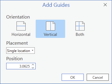 For example, I want a vertical Guide placed at exactly 3 1/16 inches (3.0625 inches).
