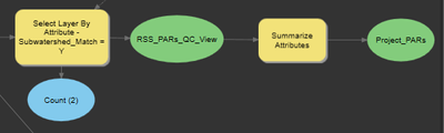 Hi - I am working in Pro 3.0.1. I have a model builder that includes a select by attribute step (Subwatershed=Y), and then the next step is to summarize the attributes to provide the sum of scores (PAR) by Project ID on the selection. I would expect only the records included in the selection to be included in the summarize by attributes summary; however, the summarize by attribute process is ignoring the selection and calculating the sum on all records in the layer. The select by attribute step is working. If I do this manually, outside of model builder, it does it correctly. Does anyone have any suggestions why this is occurring? The warning on the Summarize by Attribute step is just that the table already exists.