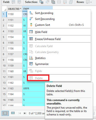 The project has unsaved edits, the field is required, or the table or its schema is read only.