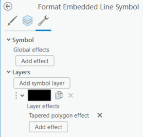 8. In the Format Embedded Line Symbol pane that opens, click the Structure tab then Add symbol layer > Fill layer. Delete the Enclosing polygon effect on the new fill layer, delete the default line symbol layer below the new fill layer,.