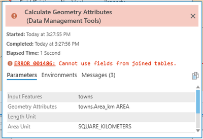 And the 'Area_km' is part of that attribute table. The error implies that this is due to the field being in the joined table: