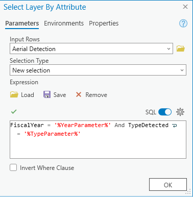 Select Layer By Attribute expression window: