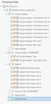 Trying to migrate from ArcMap to ArcGIS Pro, and to recreate a report that works in Map. I have the basics done, but the report prints a fresh page for each group in the report, and I want them to extend down the page as they did in the Map version. Didn't see this addressed on these pages: https://pro.arcgis.com/en/pro-app/latest/help/reports/tutorial-create-and-modify-a-report.htm,https://pro.arcgis.com/en/pro-app/latest/help/reports/templates-and-styles.htm#ESRI_SECTION1_DE2CD58...https://pro.arcgis.com/en/pro-app/latest/help/reports/reports-in-arcgis-pro.htm. There was nothing in the group footer, and I removed everything from page and report footers based on answer in this question, https://community.esri.com/t5/arcgis-pro-questions/arcgis-pro-report-showing-field-column-labels-and.... Still no joy.