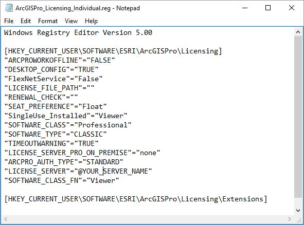 By running this registry update after the software is installed the end user can avoid having to manually entering ArcGIS Pro's licensing information.Note - this example shows a "Standard" license level, other options are BASIC and ADVANCED.