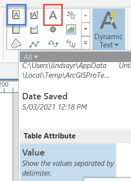 When creating Dynamic Text (for instance, a Table Attribute Value), the type of element created can be influenced and can impact on the behaviour of the text box created. I was having trouble creating a dynamic text element that I could resize, but found that the aspect ratio was locked and no matter what, it would just get bigger and smaller and showed all values returned (Straight Text element). What I wanted was to have a text box of a set size that would only show the 1st value returned (not many).