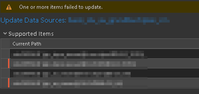 I'm getting failed to update data sources in Pro 3.1.3, were you able to figure this out?