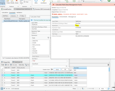After I applied the constraint rule I tried to update one record again using the field calculator. This time using "TIM" and the constraint rule stopped the edit.