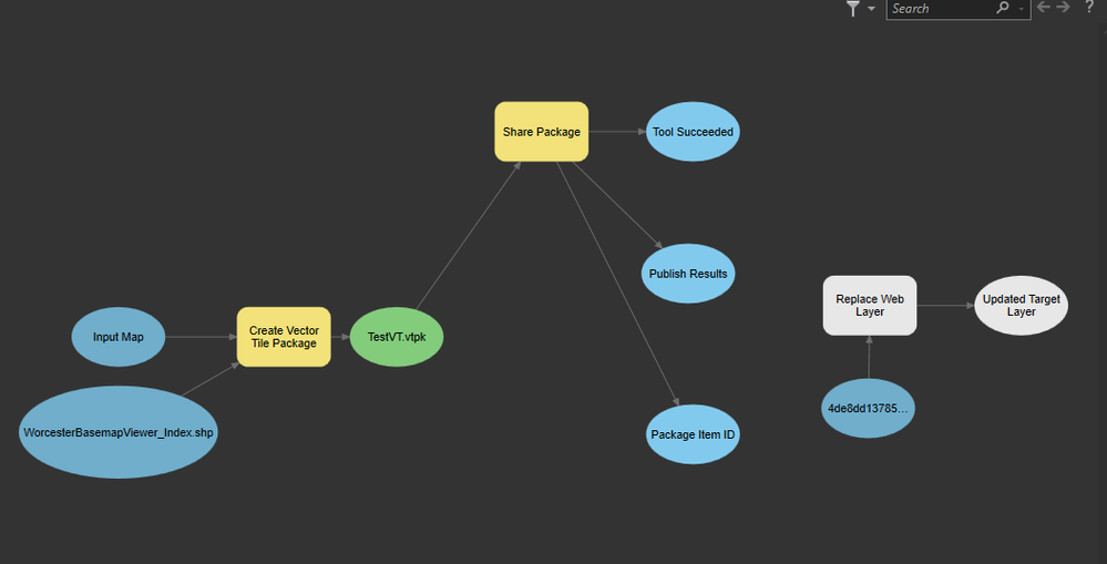 I'm relatively new to ModelBuilder and am trying to create a model to automate the process of updating vector tiles on my organization's enterprise portal. I've included the Create Vector Tile Package, Share Package, and Replace Web Layer tools in the model. I'm having trouble figuring out how to connect the Replace Web Layer tool. In order to run that tool, I need the Package Item ID that is generated from the Share Package tool to use as the "Update Layer" input. I've tried adding the Package Item ID as a precondition of Replace Web Layer but that doesn't do the trick. Any suggestions on how to connect it properly would be appreciated. Thanks, Samara