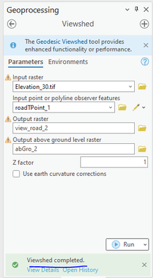 It might due to something wrong with the input point or polyline observer features for the viewshed tool. Now I am trying to use Feature Vertices To Points to convert the vertices in polyline road.shp to points as the observation points. https://community.esri.com/t5/geoprocessing-questions/visibility-analysis-using-a-polyline/m-p/57677...