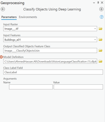 I have a problem importing the Vision language classification model in the classification after using the "classify object using deep learning" toolbox