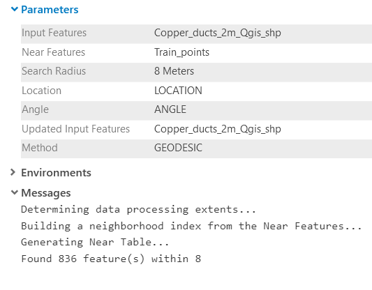 When I run the tool Near from the analysis toolbox, I get a correct result. When I run the script with the same settings in Arcpy AND in modelbuilder, I end with a total different result. Also, the Near result of modelbuilder is not correct. Can someone tell me what I am doing wrong?