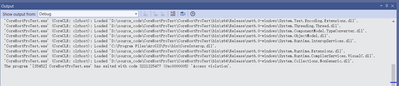I have tested your solution. One thing I have changed was path to dwg and dwg file name. It finished with code 0.
