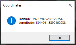 MessageBox.Show($"Latitude: {mapPoint.Y}\nLongitude: {mapPoint.X}", "Coordinates", MessageBoxButton.OK, MessageBoxImage.Information);