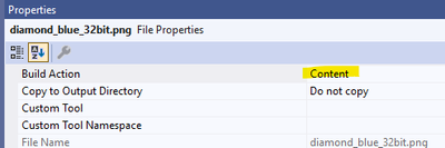 I thought it had to be copied into the add-in anyway. However, ArcGIS Pro loads the images from the add-in, not from the build folder. The images are included directly from the project directory into the .esriAddInX package. When you select a copy option, Visual Studio also copies the image files to the bin\Debug folder. When building the add-in (.esriAddInX), naming conflicts or duplicate resource paths can occur. This can lead to the images not being included or referenced correctly, even though they are visible in the project.
