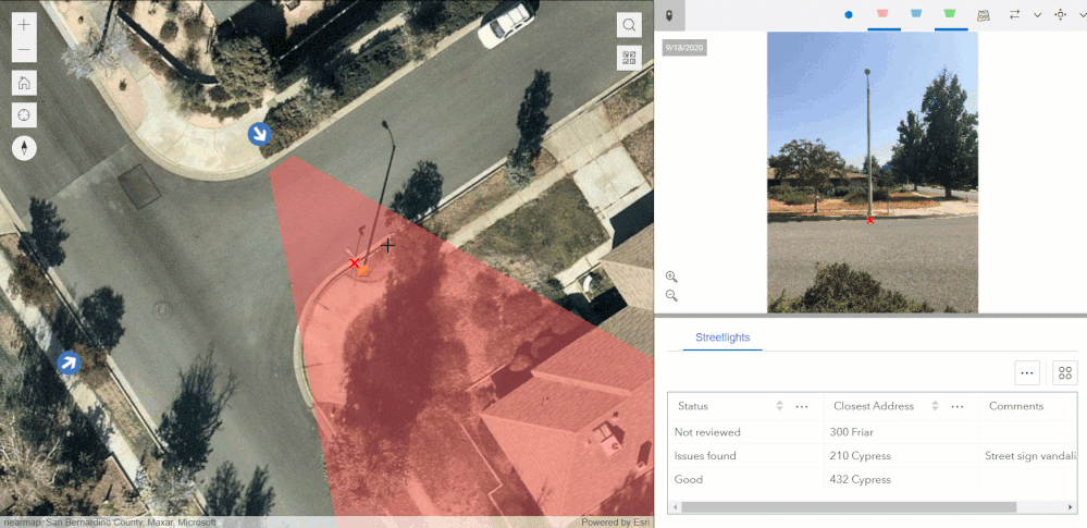 Your photos no longer need to sit idle within a popup. With oriented imagery, the map and your photos work together. See below, for example, how you can dynamically show in a map the field of view of a photo.