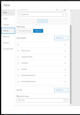 I'm unsure what is causing this behavior. I noticed that the first value field in your images is missing. I don't know if this is related but it would be a good place to start. This is the assetid field with an alias of Streetlight ID. I just wanted to confirm that the assetid field is present in the streetlight feature layer and has not been renamed (alias changes are ok)