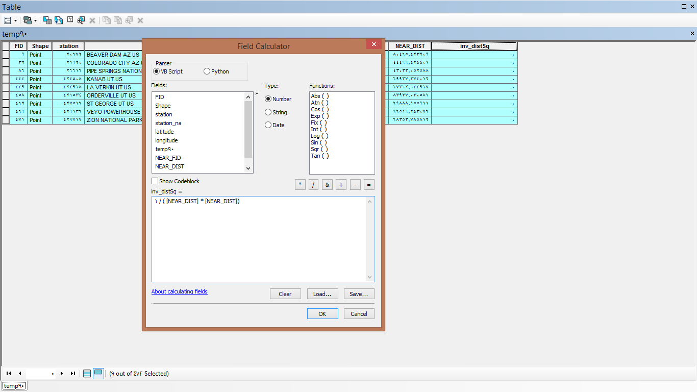 Now, add field (Double) and calculate the square of the inverse distance as you and Dan agree