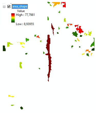 • Raster Calculator: Raster(r"area_perimeter") / Raster(r"area_thickness") (the resulting raster with the relation between the perimeter and thickness)